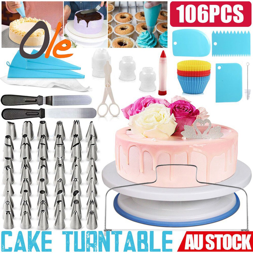 106pcs Cake Decorating Supplies Cake Turntable Set Pastry Tube Fondant Tool Baking Supplies Shopee Philippines